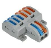 Клемма строительно-монтажная серии 222 предназначена для соединения одножильных и многожильных медных проводников без использования инструмента в электрических сетях переменного и постоянного тока. Клемма допускает многократное присоединение и отсоединение проводников. Количество подключаемых проводников - 8.