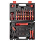 • Состав набора: • пресс-клещи СТС • 5 сменных матрицы • Универсальный инструмент с набором сменных матриц для опрессовки широкого ряда неизолированных разъемов и наконечников (автоклемм), втулочных наконечников, изолированных наконечников и разъемов, неизолированных трубчатых наконечников и гильз • Легкий, компактный и эргономичный инструмент • Угол наклона головы: 23° • Матрица 248: • опрессовка автоклемм типоразмера 2.8 и 4.8 • сечения: 0.25–1.5 мм2 • трехпозиционная матрица • профиль обжима: лепестковый двухконтурный • Матрица 0.25 – 6 мм2: • опрессовка втулочных наконечников НШВИ и НШВ • сечения: 0.25 –6 мм2 • шестипозиционная матрица • профиль обжима: трапециевидный • Матрица 6 –16 мм2: • опрессовка втулочных наконечников НШВИ и НШВ • сечения: 6 –16 мм2 • трехпозиционная матрица • профиль обжима: трапециевидный • Матрица 0725: • опрессовка изолированных наконечников типа: НКИ, НКИ(н), ВНКИ, НВИ, НИК, НШКИ, НШПИ, ГСИ • сечения: 0.25–2.5 мм2 • двухпозиционная матрица • профиль обжима: овальный двухконтурный • Матрица 0325: • опрессовка неизолированных медных наконечников и гильз типа: ТМЛ, ТМЛ(с), ТМ, ГМЛ, ГМЛ (о), ПМ, НШП • сечения: 0.25–2.5 мм2 • четырехпозиционная матрица • профиль обжима: клиновидный • Пресс-клещи СТС несовместимы с матрицами МПК (КВТ) • Храповой механизм, обеспечивающий блокировку обратного хода до завершения полного цикла опрессовки • Устройство разблокировки храпового механизма • Регулятор прижимного усилия матриц • Двухкомпонентные эргономичные рукоятки с небольшим раскрытием • Обработка поверхности: воронение • Вес: 680 г • Длина инструмента: 195 мм • Габаритные размеры сумки: 230х100х45 мм