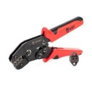 • Диапазон сечений втулочных наконечников: • НШВИ, НШВ: 0.25–10 мм2 • НШВИ(2): 2х0.5–2х6.0 мм2 • Универсальный инструмент для опрессовки широкого ряда втулочных наконечников • Одна саморегулирующаяся матрица на все типоразмеры диапазона • Ширина обжимной матрицы: 13 мм • Инструмент перекрывает диапазон из 17 размеров втулочных наконечников • Квадратный профиль обжима с рифлением • Усовершенствованный храповой механизм, гарантирующий полный цикл опрессовки • Регулятор прижимного усилия матриц. Винт регулятора имеет насечку для быстрой переустановки усилий без отвертки • Двухкомпонентные эргономичные рукоятки с небольшим раскрытием • Вес: 405 г • Длина: 175 мм
